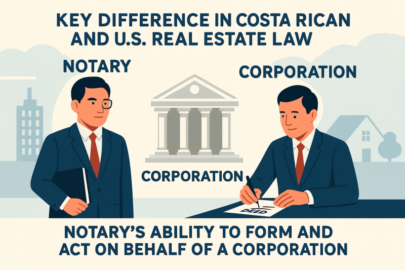 When purchasing real estate in Costa Rica, one of the most surprising differences for U.S. and Canadian buyers is the unique legal authority of the notary public (notario público). In the United States, a notary merely verifies identities and witnesses signatures. In Costa Rica, a notary is a state-appointed attorney with judicial powers. This distinction is so fundamental that it allows the notary to do something that would be impossible in the U.S.: create a corporation, appoint themselves as its representative, and sign a property deed on its behalf — all in one seamless process.